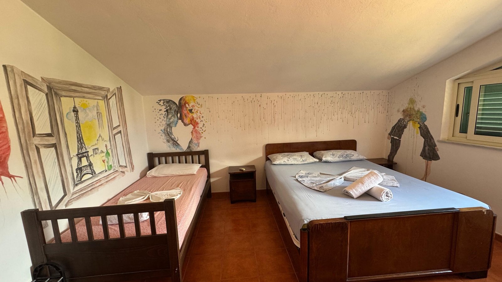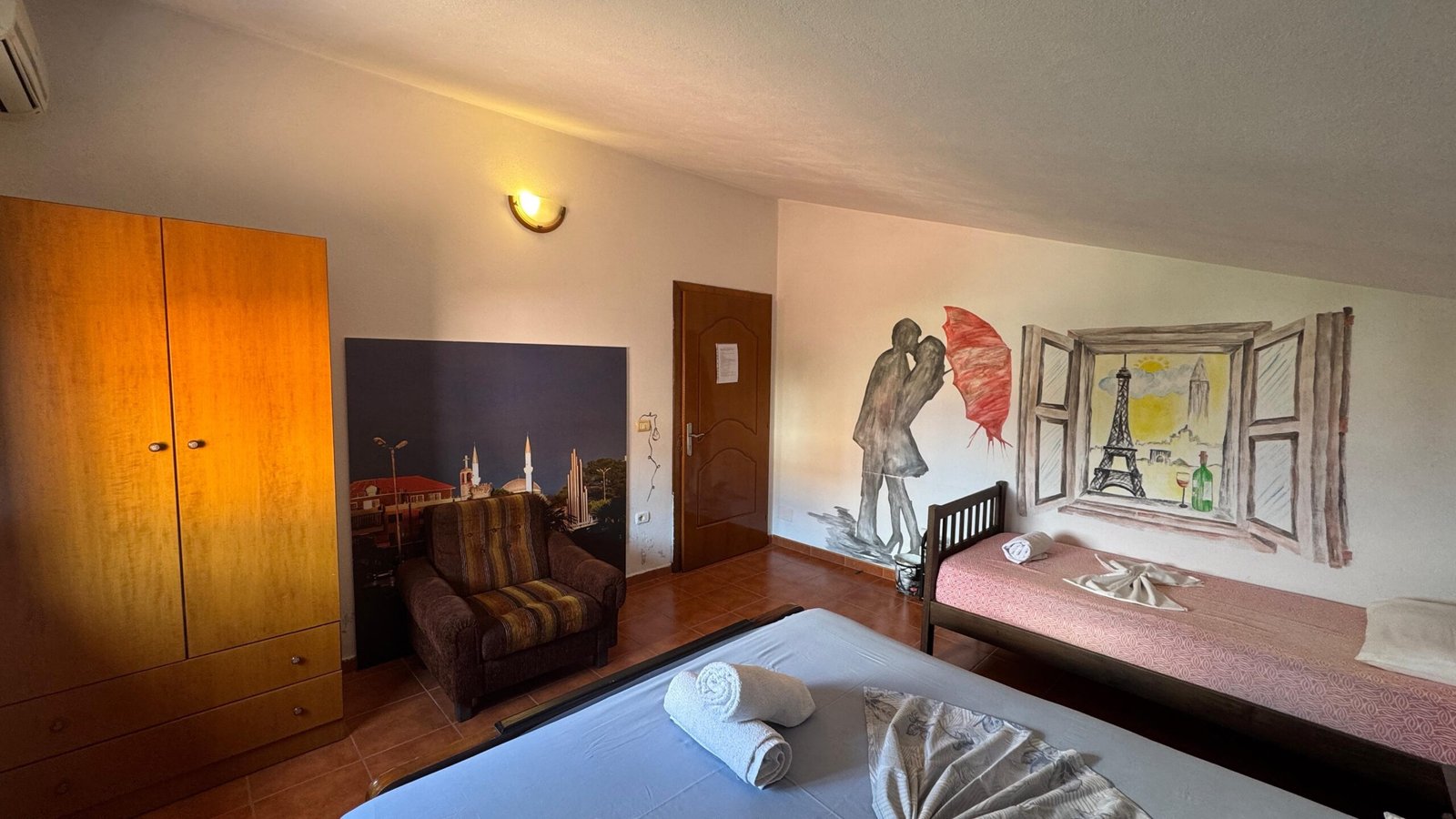 Rooms/ Arka also offers accommodation services, with three comfortable rooms available for every visitor to Shkodra. Conveniently located in one of the city’s most attractive areas, just a few steps from the historic Gjuhadol neighborhood and the city center, Arka provides a pleasant and cozy stay for tourists looking to experience the culture and history of Shkodra up close.
